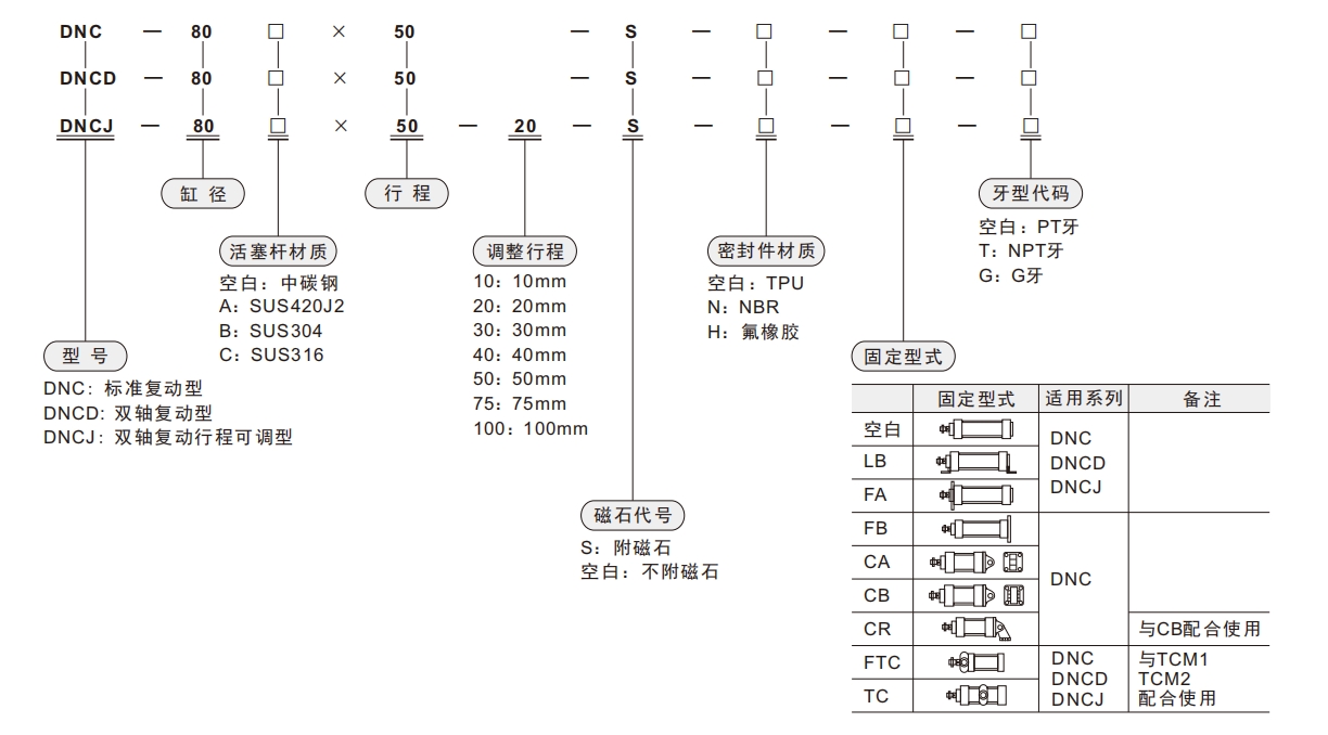 ڈی این سی سیریز نیومیٹک سلنڈروں کو فیسٹو ڈی این سی سلنڈر اور ایر ٹی اے سی ایس ای سلنڈروں کے لئے براہ راست متبادل کے طور پر ڈیزائن کیا گیا ہے ، جو بڑھتے ہوئے طول و عرض اور کارکردگی دونوں میں مطابقت کی پیش کش کرتے ہیں۔