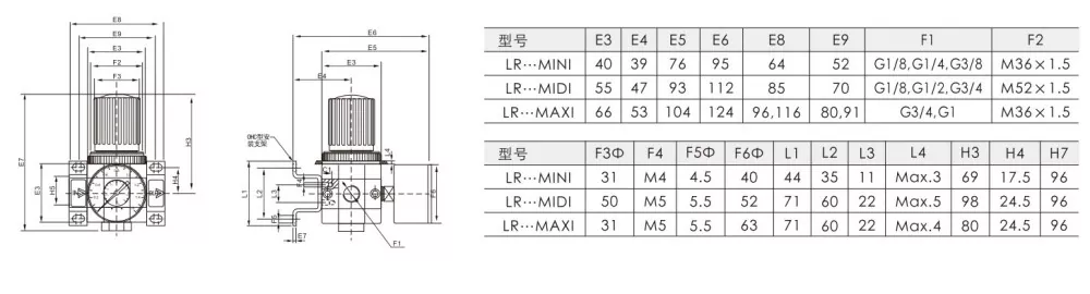 فیسٹو ٹائپ ایل آر پریشر ریگولیٹر آؤٹ لائن طول و عرض