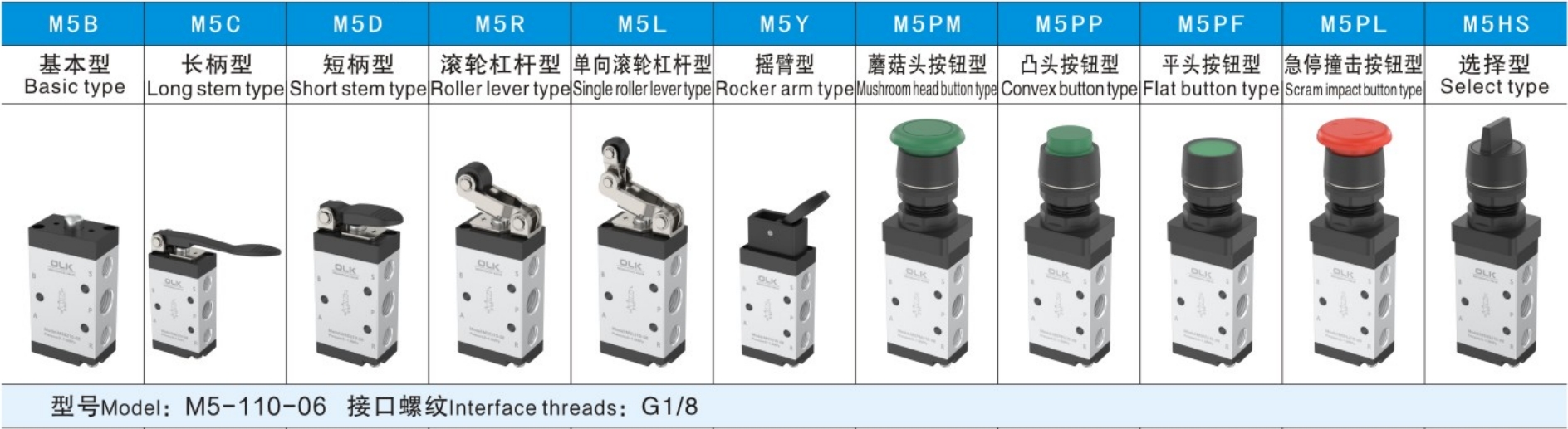 M5 مکینیکل والو 2 پوزیشن 5 وے ہے ؛ M3 مکینیکل والو 2 پوسین 3 وے ہے۔