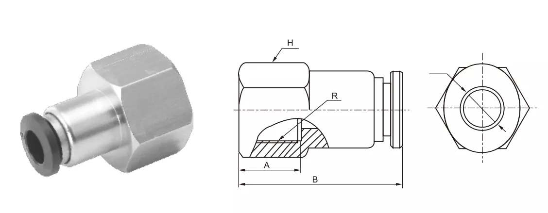 ٹیوب فٹنگ آؤٹ لائن طول و عرض کے پیرامیٹرز میں پی سی ایف خواتین سیدھے دھکے